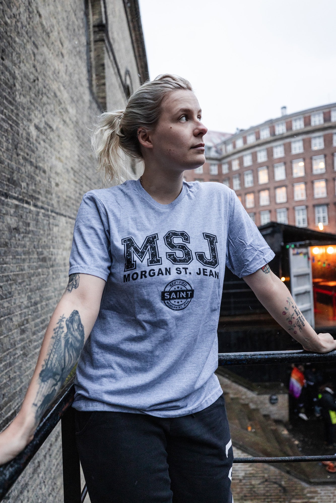 The unisex soft-style t-shirt features "MSJ Collegiate" artwork. Made from very soft materials, this tee is 100% cotton.