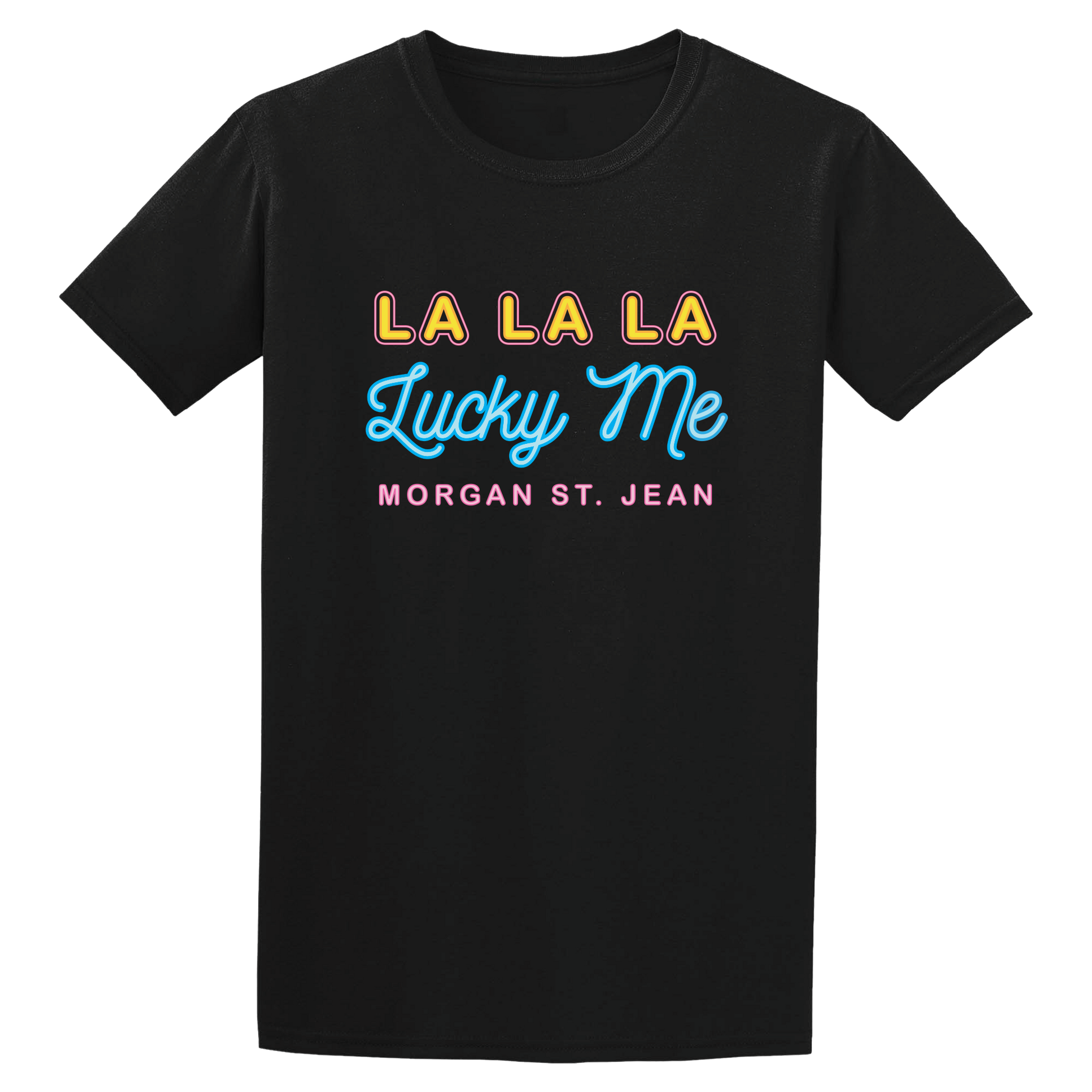 The unisex soft-style t-shirt features "La La La Lucky Me" artwork. Made from very soft materials, this tee is 100% cotton.